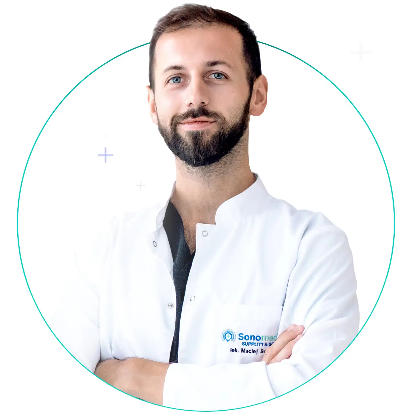 – absolwent kierunku lekarskiego na Uniwersytecie Medycznym im. Piastów Śląskich we Wrocławiu. Obecnie związany karierą zawodową z Zakładem Radiologii i Diagnostyki Obrazowej Uniwersyteckiego Szpitala Klinicznego we Wrocławiu. Lek. Maciej Sołtysik stale doskonali swoje umiejętności z zakresu ultrasonografii w licznych kursach, m.in. tarczycy i przytarczyc, piersi, układu ruchu, badań Dopplerowskich. Brał udział w krajowych i międzynarodowych konferencjach radiologicznych m.in. “Annual Radiology Meeting” w Dubaju, a także w warsztatach biopsyjnych piersi kierowanych przez doświadczonych specjalistów z Narodowego Instytutu Onkologii. Ultrasonografia stanowi jego pasję, której poświęca znacznie więcej, niż godziny pracy czy szkolenia; od lat szczególnym zainteresowaniem traktuje ultrasonografię układu mięśniowo-szkieletowego. W czasie studiów odbył staż zagraniczny w Niemczech, posiada także niemieckie prawo wykonywania zawodu lekarza, które nabył w roku 2021 r.. Konsultuje pacjentów w języku niemieckim oraz angielskim. Członek Polskiego Lekarskiego Towarzystwa Radiologicznego.